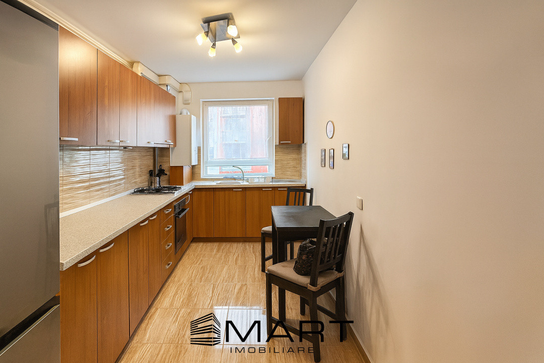 La nivel de dotări, apartamentul beneficiază de curent electric, apa, canalizare, gaz, sistem de încălzire prin climatizare, ferestre tip , pardoseli , pereți finisați cu , izolatie în cu termosistem de 10cm, usă de intrare de , respectiv uși de interior . Apartamentul se închiriază mobilat complet, cu bucataria , aspect care permite viitorului chiriaș să se mute rapid și cu investiții minime în amenajare.