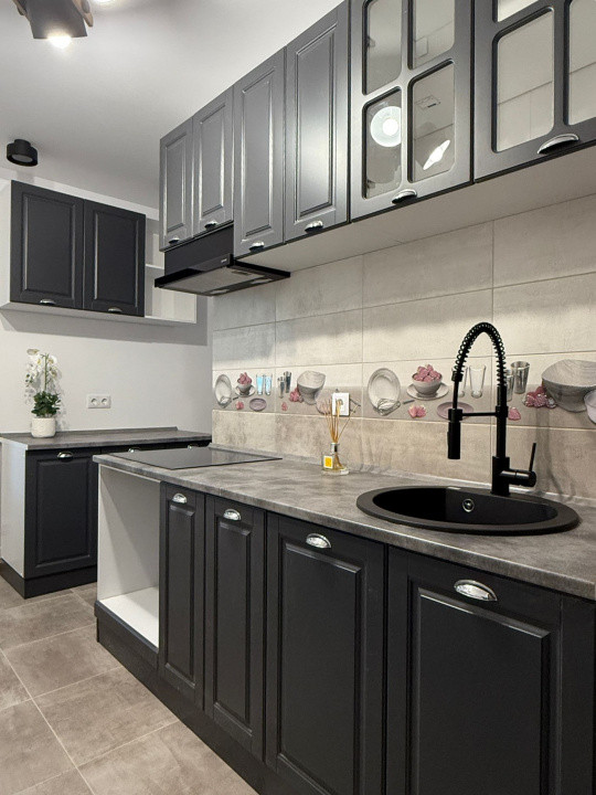 Apartamentul se preda complet mobilat si utilat (frigider, masina de spalat haine, televizor, plita electrica, hota, cuptor microunde).