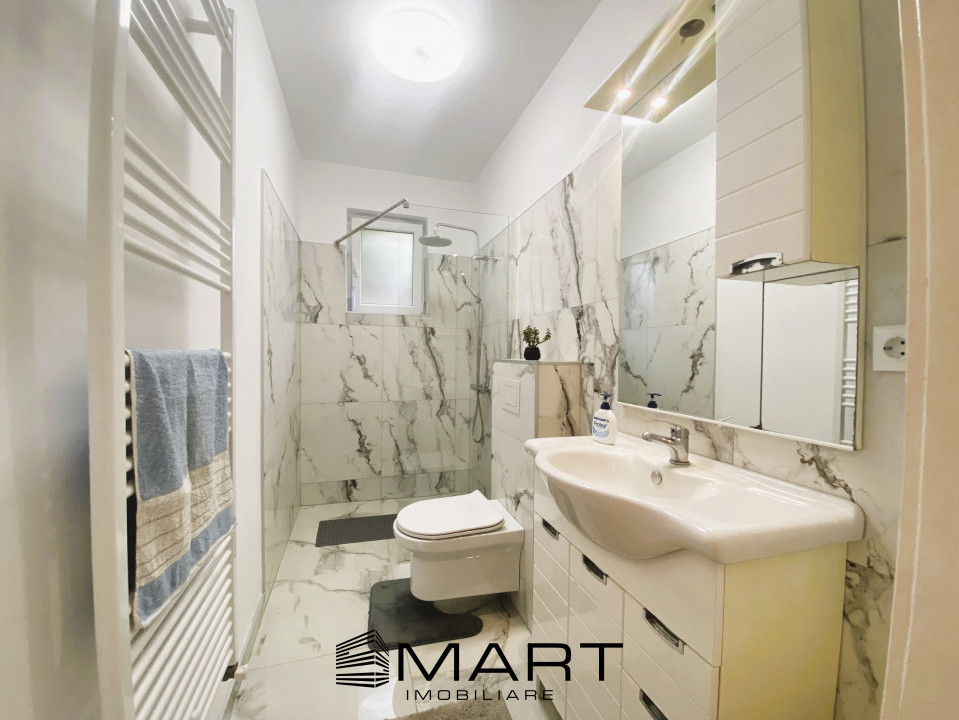 -Garsonieră separată – 30 mp: complet mobilată & utilată, cu baie modernă și intrare din curtea comună, ambele bine izolate (confort termic & fonic) și cu centrale proprii.