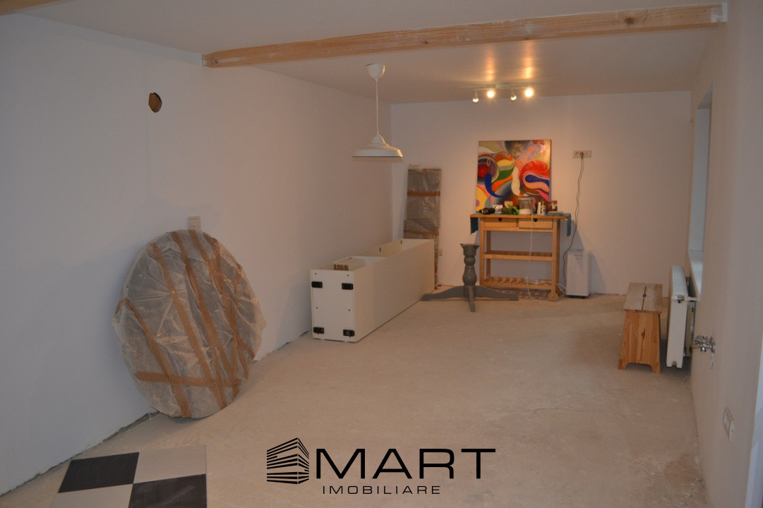Compartimentare: 2 camere luminoase. Bucătărie cu living. 1 baie. Cameră tehnică cu centrală. Cămară săpată în stâncă.