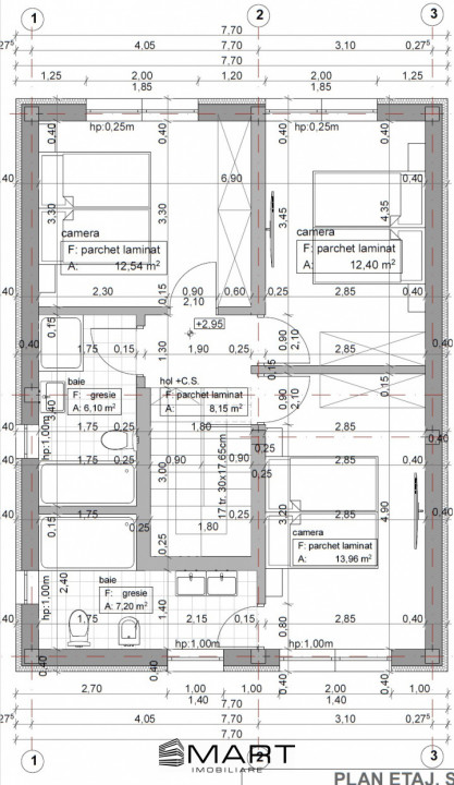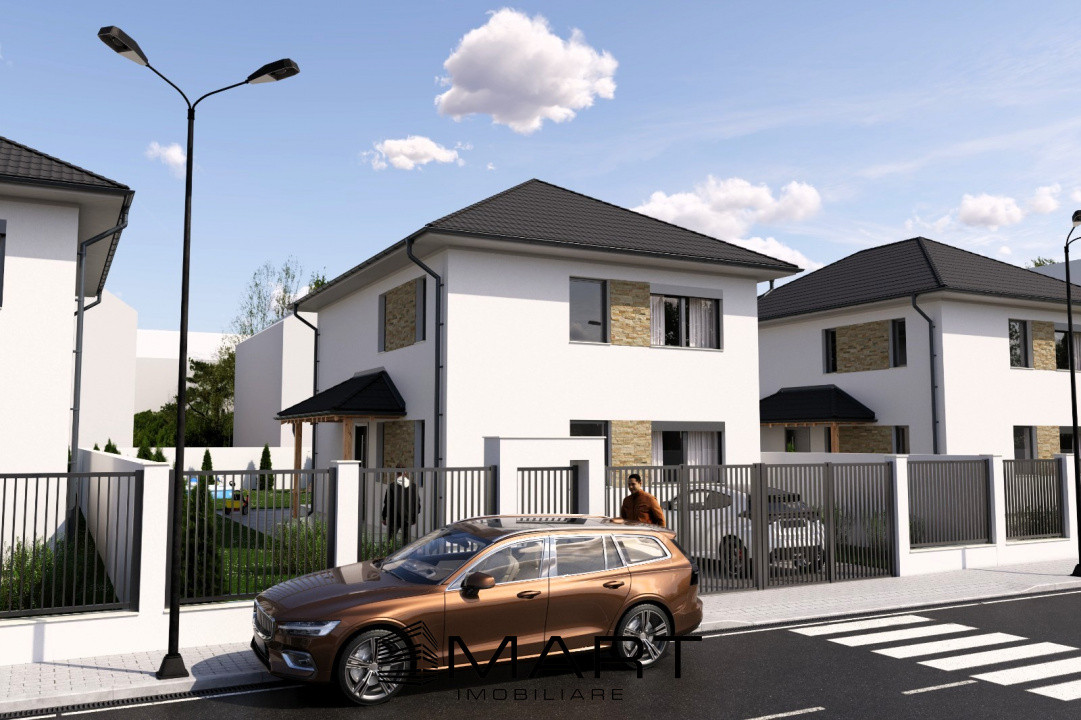 Parterul este compus din hol la intrare, living spatios cu iesire pe terasa exterioara, bucatarie ce poate fi inchisa, camara, spatiu depozitare sub scari si baie. La etaj dispune de hol, baie si 3 dormitoare, din care unul cu baie proprie.