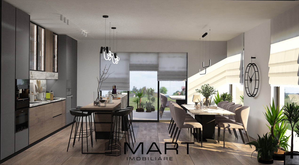 Parter: bucătărie, dining și living generos cu acces la terasă