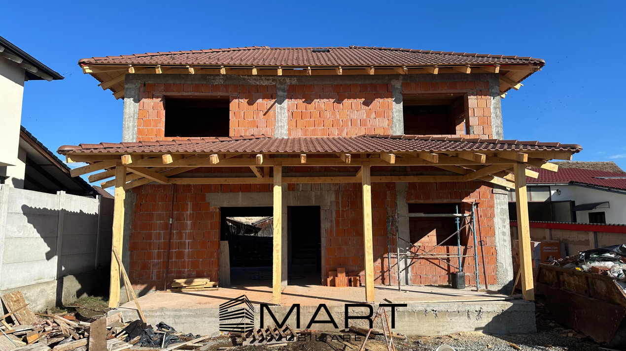 La momentul actual, casa este ridicata, cu acoperis si este la stadiul de Rosu, astfel daca clientul doreste se mai pot face anumite modificari pentru a fi pe placul noului cumparator.