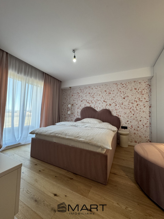Toate dormitoarele beneficiază de balcoane, iar livingul se deschide spre o terasă amplă, cu vedere spre grădina amenajată.
