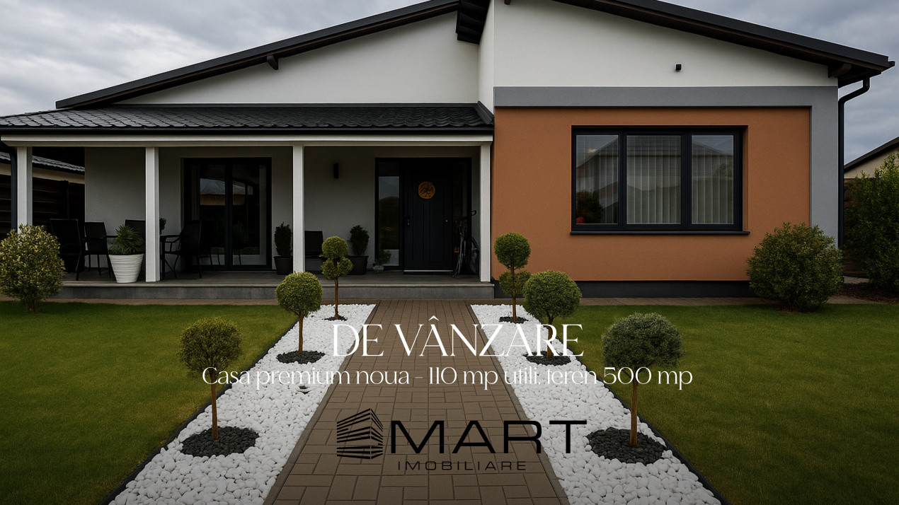 Detalii proprietate: Suprafață teren: 500 mp. Suprafață utilă: 110 mp. 3 dormitoare, 1 living generos, 2 băi, 1 bucătărie complet utilată, 1 magazie (4,5 x 4,5 m). Terasă mare de 27 mp și curte amenajată cu gust. Tencuită exterior și interior, finisaje premium, materiale de calitate superioară. Poartă automată pe șină, sistem de supraveghere video. Pod izolat cu spumă poliuretanică de 20 cm.