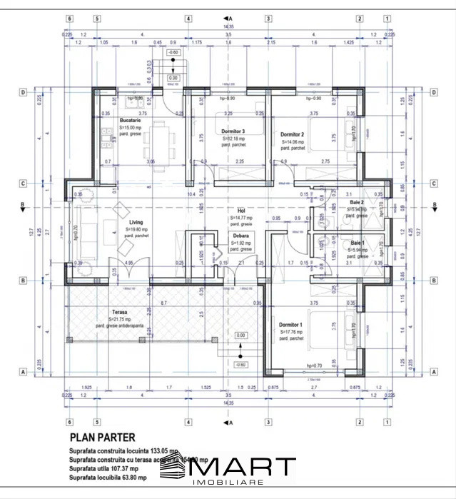- Casa este construita pe parter si dispune de suprafete vitrate mari avand termopane Salamander tripan 7 camere. Incalzirea este in pardoseala, izolatia exterioara este cu polistiren eps 80+, izolatie tavane cu vata bazaltica de 15 cm. Acoperisul este din tabla Bilka de 0,65 mm si constructia casei cu caramida de T30.