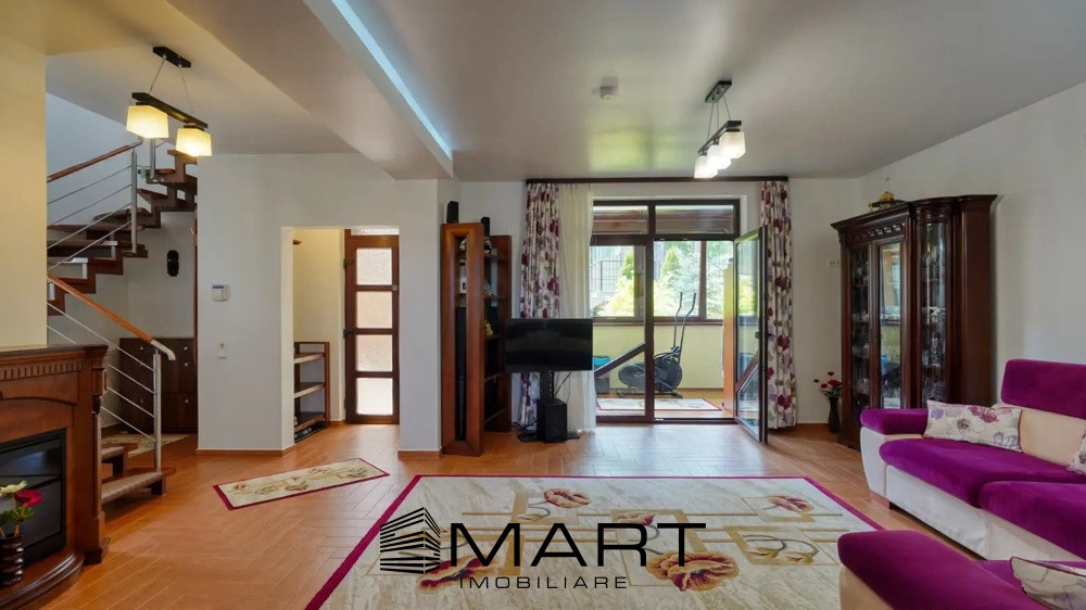 Compartimentare: Parter: living cu terasă închisă, bucătărie, birou/dormitor, baie. Etaj: dormitor matrimonial cu baie proprie + balcon, 2 dormitoare cu balcon comun, baie. Mansardă: 2 dormitoare (unul cu 3 ferestre Velux și vedere superbă spre munte), baie, depozitare.