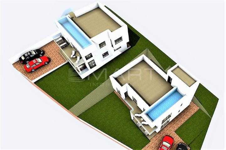 Imobilul va fi construit pe un teren cu o suprafata de 485 mp si are regimul de inaltime P+1 iar deasupra imobilului se afla terasa circulabila de aproximativ 64 mp unde se afla si bazinul de inot cu suprafata de aproximativ 16 mp.