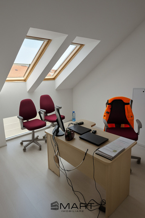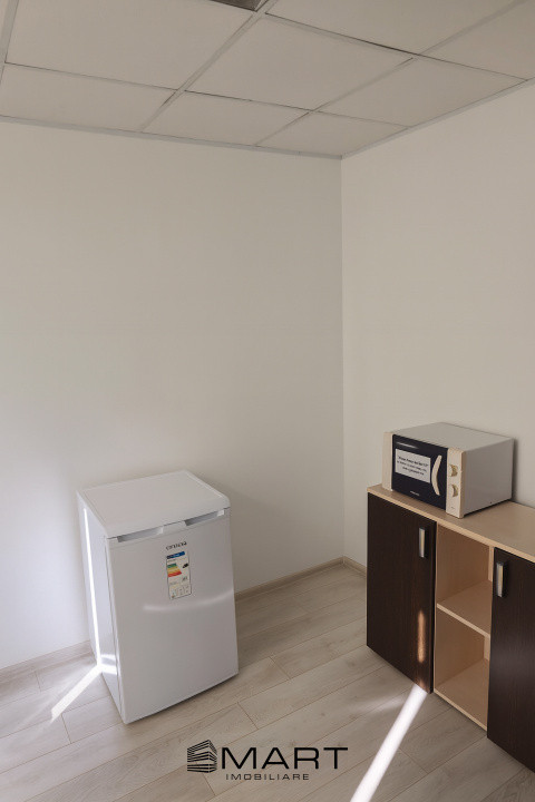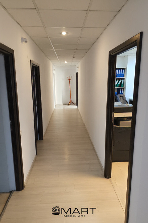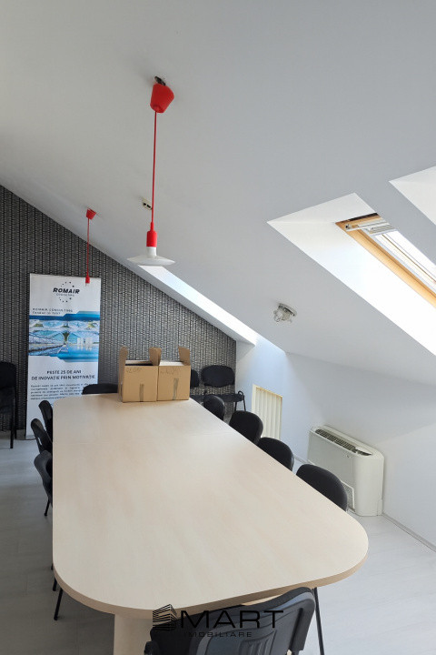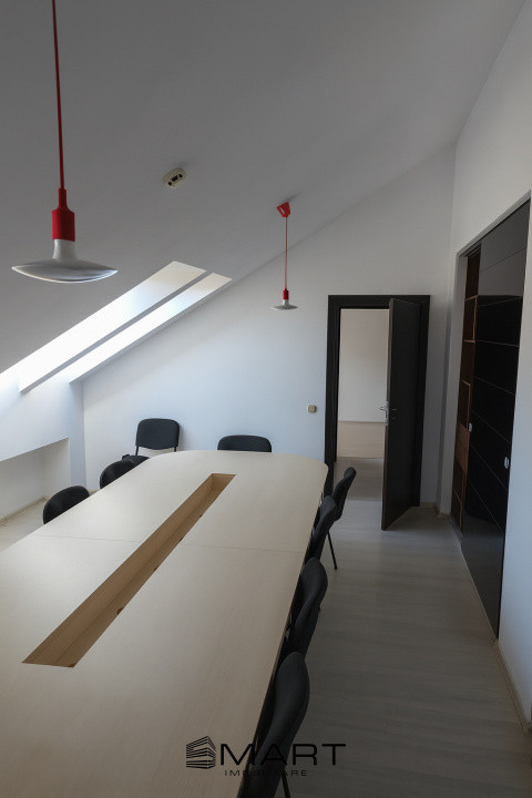 Smart Imobiliare va propune spre închiriere un spațiu de birouri cu suprafața de 110 mp, compartimentat eficient în: sală de conferințe, birou individual/managerial, open-space pentru birouri comune, chicinetă și grupuri sanitare. Spațiul este luminos, bine întreținut și oferă atât zone comune de lucru, cât și încăperi dedicate pentru întâlniri sau activități ce necesită intimitate și concentrare.