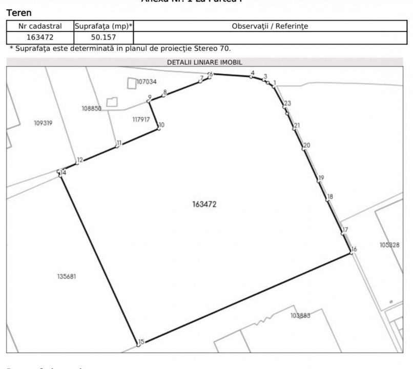 Poziția terenului este una fantastică și suprafața de 50157 mp îl recomandă pentru dezvoltări rezidențiale/mixt rezidențial-comercial, în funcție de conceptul pe care îl are viitorul proprietar.