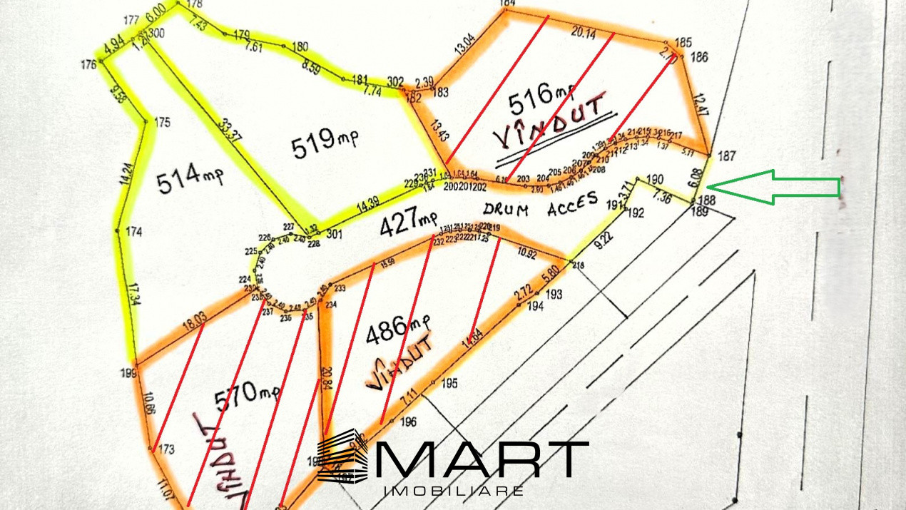 Suprafata terenului este de 517mp si are deschidere la drum de 20ml.