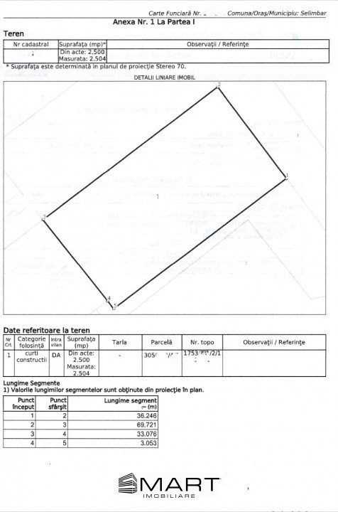 Terenul are o suprafata utila de 2500 mp, cu deschidere de 68.72 x 36.13.